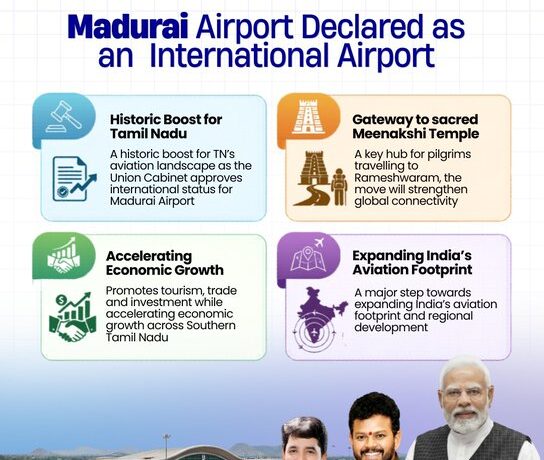 Madurai Airport Declared International; Boost to Tourism, Pilgrimage and Trade