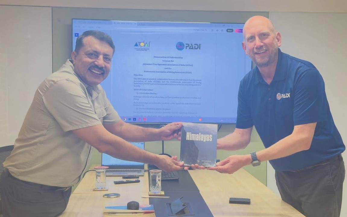 Under the agreement, ATOAI will coordinate efforts and represent Indian adventure tour operators, while PADI will contribute technical expertise, conduct site assessments and support the adoption of global safety and environmental standards. The MOU is effective immediately and is valid for five years, with provisions for renewal upon mutual consent.