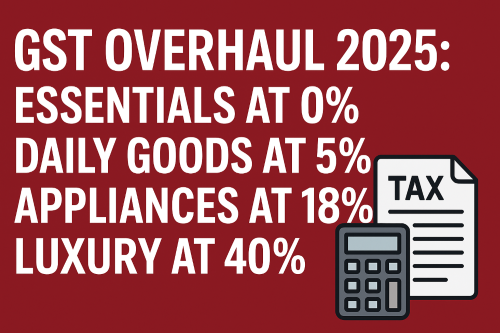 GST Overhaul 2025: Essentials at 0%, Daily Goods at 5%, Appliances at 18%, Luxury at 40%