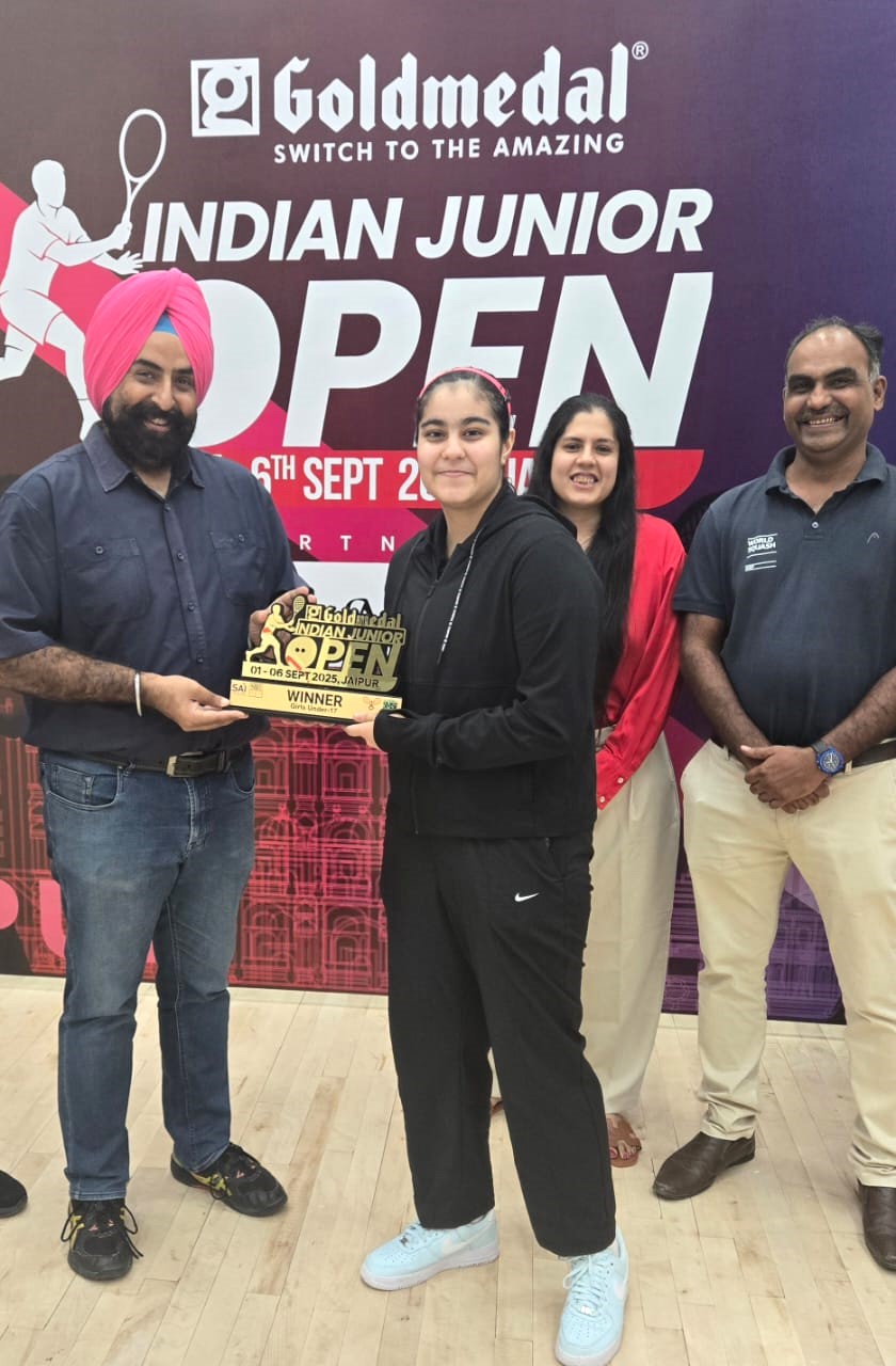 Chandigarh, September 8, 2025: Sehar Nayar, a rising squash star from Chandigarh Club Squash Academy and a student of Vivek High School, has brought laurels to the city by winning the most prestigious international squash championship in India — the 6-Star Platinum Indian Junior Open.
