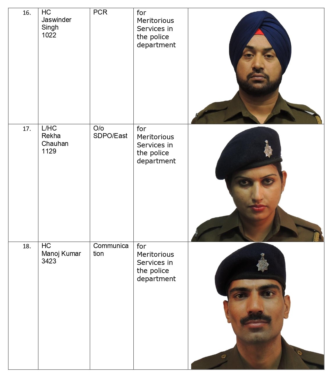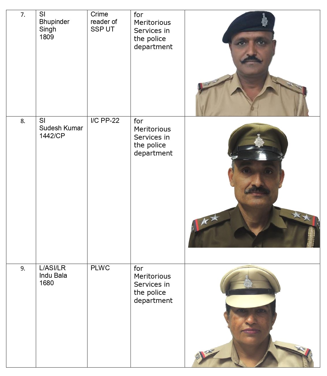 The Administrator has approved the Administrator’s Police Medal for Distinguished/Meritorious Services in the Police Department to the following Police Officials on the occasion of Republic Day 2026.